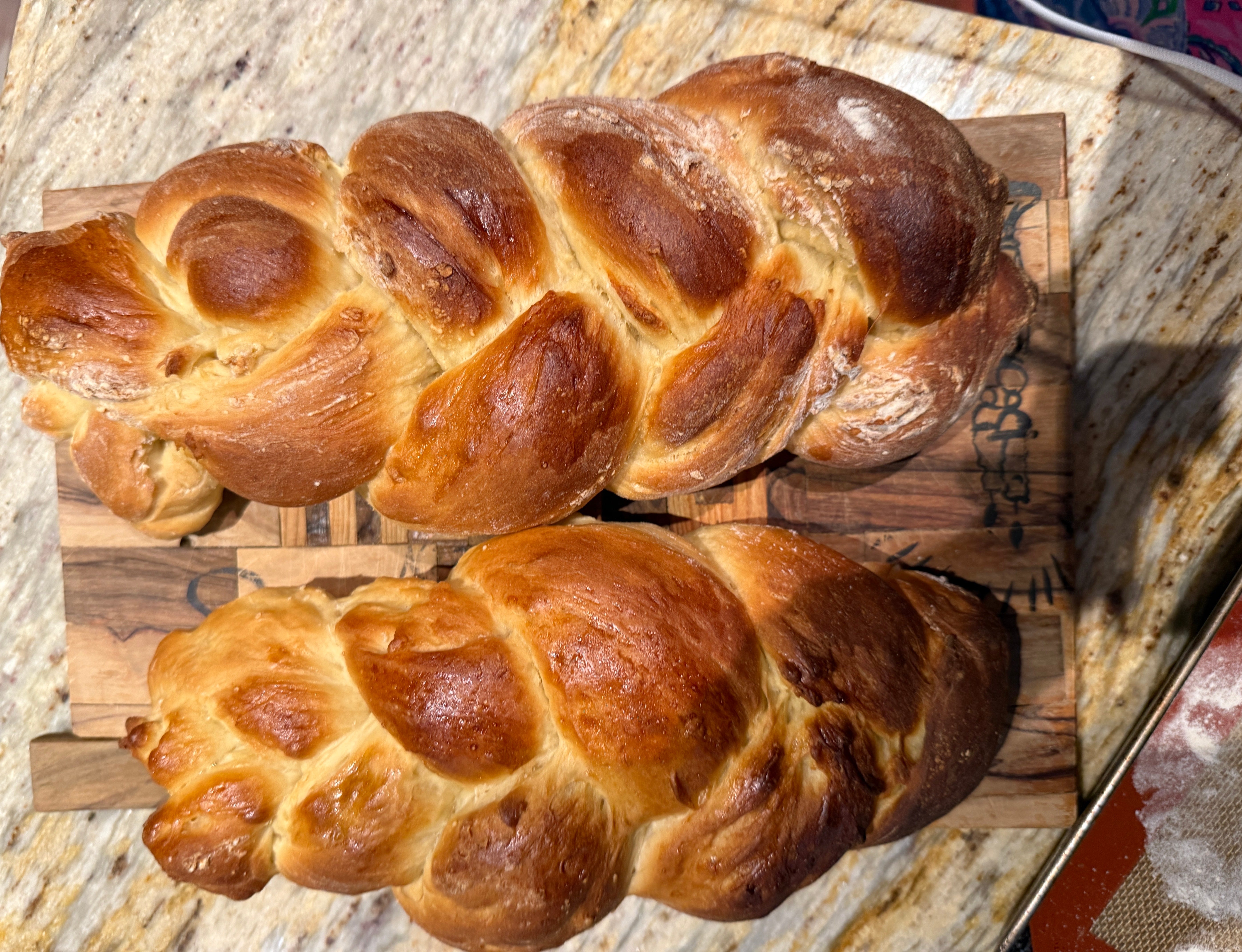 As it is Friday evening and the weekend of my Mom’s yahrzeit (anniversary marking one’s passing in Judaism) I chose to bake a Challah today in her memory. This is a braided bread symbolizing peace and unity that is traditionally shared during the Jewish Sabbath. Growing up it was customary to buy one at Lederman’s Bakery in Newton Center and then for my own family at Blue Moon Bakery and Cafe in Medfield where they famously baked the original Freedman recipe. Since moving to the Cape I have not found any on par and have since learned to bake my own.